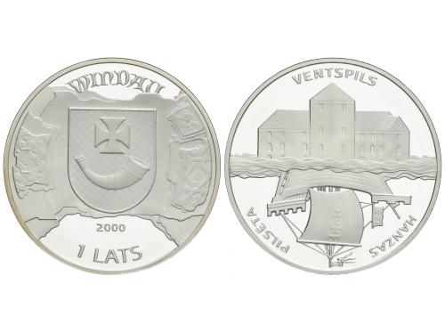LETONIA. 1 Lats. 2000. 31,82 grs. AR. Ciudad Hanseática de Ventspils. KM-46. PROOF.