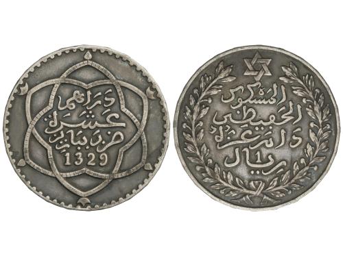 MARRUECOS. Rial (10 Dirhams). 1329 d.H. (1911). ABDUL AL-HAF