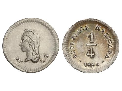 MÉXICO. 1/4 Real. 1860. MÉXICO. L.R. 0,82 grs. AR. Bonita pá