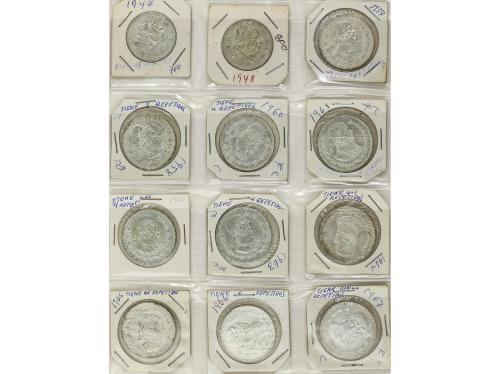 MÉXICO. Lote 69 monedas 5 Centavos a 500 Pesos. Siglo XX. Latón, CuNi, AR. Pequeña colección de moneda méxicana, contiene unas 25 monedas en AR (varias de plata baja), entre tamaño tipo duro y 1/2 duro. En álbum. MBC a SC.