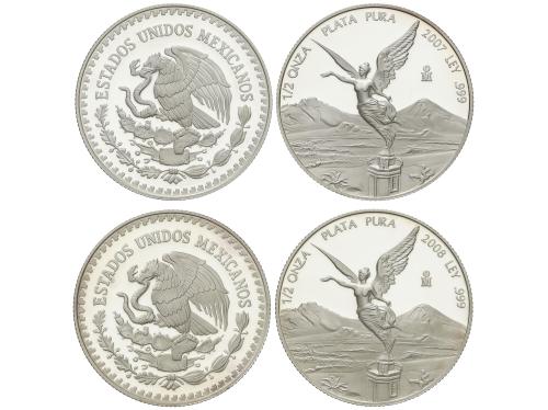 MÉXICO. Lote 2 monedas 1/2 Onza. 2007 y 2008. AR. Victoria a