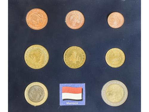 MÓNACO. Serie 8 monedas 1 Céntimo a 2 Euro. 2001. RAINIER III. Serie montada en cartón. SC.