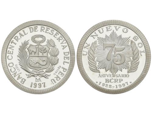 PERÚ. Nuevo Sol. 1997. 33,51 grs. AR. 75 Aniversario Banco C