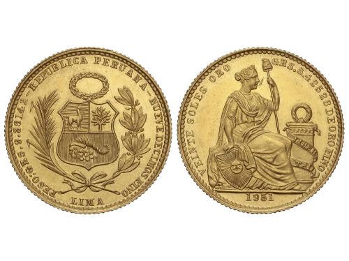 PERÚ. 20 Soles. 1951. 9,33 grs. AU (900). Fr-80; KM-229. EBC