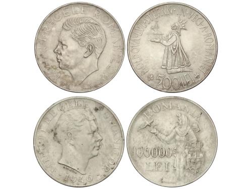 RUMANÍA. Lote 2 monedas 500 y 100.000 Lei. 1941 y 1946. MIHA