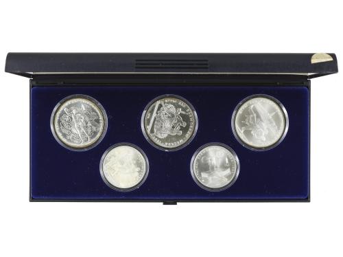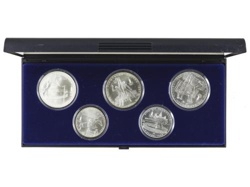 RUSIA. Set 28 monedas 5 (14) y 10 Rublos (14). 1978 a 1980. AR. Olimpiada Moscú ´ 80. Colección completa. En 5 estuche originales. FDC.