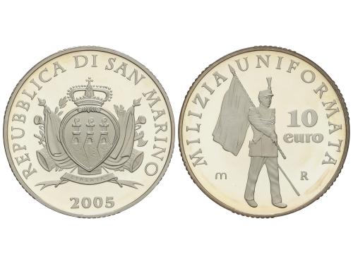 SAN MARINO. 10 Euro. 2005. 21,97 grs. AR. V centenario uniforme militar. KM-344. PROOF.
