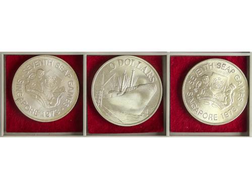 SINGAPUR. Lote 3 monedas 5 (2) y 10 Dollars. 1973 (x2) y1976. AR. 2x VII Juegos Peninsulares del Sudeste Asiático y X aniversario Independencia. A EXAMINAR. KM-11. SC.