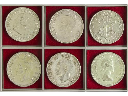 SUDÁFRICA. Lote 6 monedas 5 Shilling (4) y 50 Cents. 1947 a 1963. AR. Todas diferentes y de plata. Incluye: 1949, 1952, 1958, 1960 y 1963. A EXAMINAR. KM-40.1, 41, 52, 55, 62. EBC+ a SC.