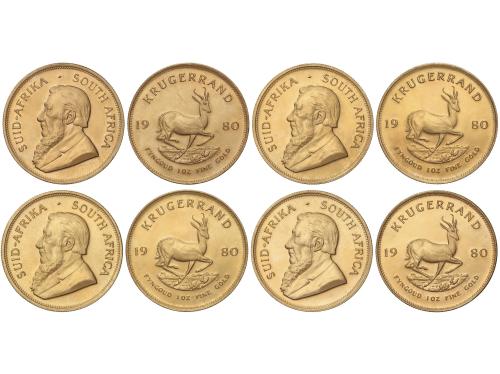 SUDÁFRICA. Lote 4 monedas Krugerrand. 1980. TOTAL 135,70 grs. AU (917). Fr-B1; KM-73. SC.
