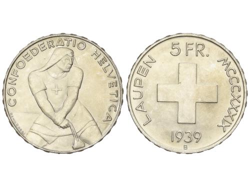 SUIZA. 5 Francs. 1939-B. BERNA. 14,93 grs. AR. VI Centenario Batalla de Laupen. KM-42. EBC+.