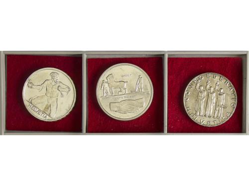 SUIZA. Lote 3 monedas 5 Francs. 1939, 1941 y 1944. AR. KM-43, 44, 45. SC- a SC.