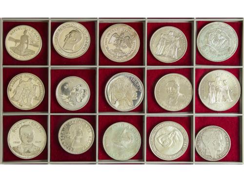 LOTES Y COLECCIONES EXTRANJERO. Lote 56 monedas. Siglo XX. DIFRENTES PAÍSES DEL MUNDO. AR. La mayoría tamaño duro. Más de 1 kg de plata. A EXAMINAR. SC a PROOF.