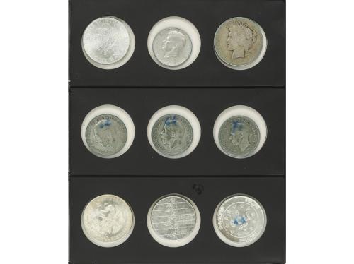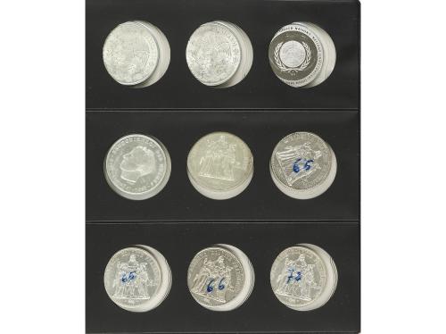 LOTES Y COLECCIONES EXTRANJERO. Lote 74 monedas. Mayoría siglo XX. VARIOS PAÍSES. AE, CuNi, AR. Lote variado con monedas en gran mayoría de plata. De tamaño medio y tipo duro. En álbum. IMPRESCINDIBLE EXAMINAR. MBC a SC.