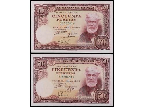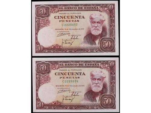 ESTADO ESPAÑOL. 6 billetes 50 Pesetas. 31 Diciembe 1951. Rusiñol. Serie A, B y dos parejas correlativas Serie C. (Casi todos leves arruguitas). Ed-462a. SC- a SC.