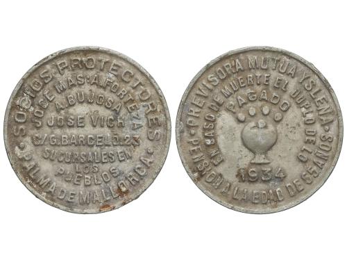 Jetón. 1934. PREVISORA MUTUA ISLEÑA. PALMA DE MALLORCA. Al. (MBC+).