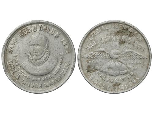 Token. 1892. MAX STINER & CO. Al. 4º centenario Columbus. Wines & Liquor Warehouse. MBC-.