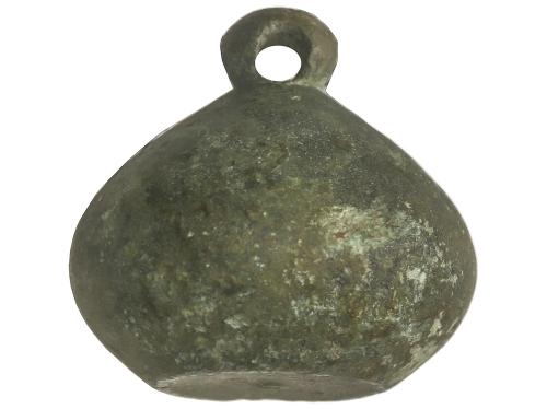 MONEDAS BIZANTINAS. Ponderal comercial de 2 1/2 Unciae ?. Siglo V-VII. 61,14 grs. AE. Ø 24x24 mm. Ponderal en forma de bulbo con la parte inferior plana y una parte superior con un elemento de suspensión. Pátina verde. Aparentemente inédito. EBC.