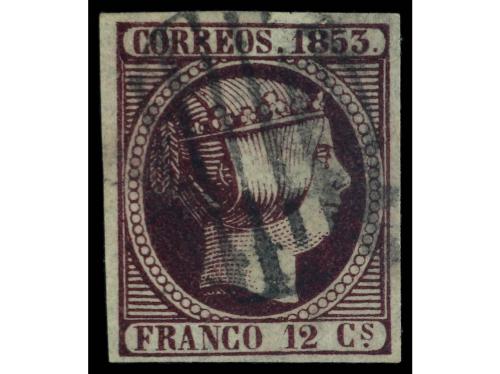 ° ESPAÑA. Ed. 18. 12 cuartos violeta. Obliteración ligera y amplios márgenes. PRECIOSO. RARO.