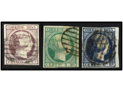 ° ESPAÑA. Ed. 18, 20, 21. 12 cuartos, 5 reales y 6 reales. Bonito aspecto, algún mínimo defecto. Cat. 620€.