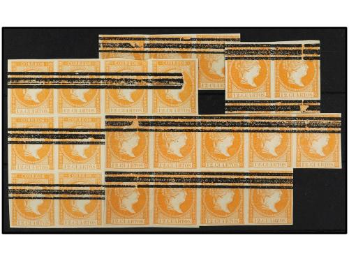 ° ESPAÑA. Ed. NE 1 (28). NO EXPENDIDOS. 12 cuartos naranja. 28 sellos BARRADOS. Cat. 4.200€.