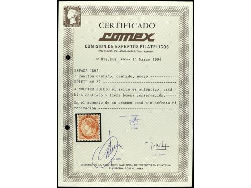 * ESPAÑA. Ed. 87. 2 cuartos castaño. Cert. CEM. PRECIOSO. RA * ESPAÑA. Ed. 87. 2 cuartos castaño. Cert. CEM. PRECIOSO. RA