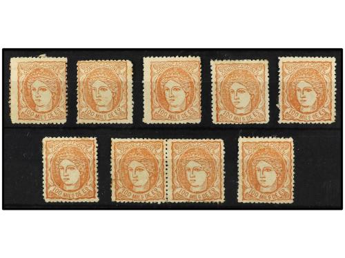 (*) ESPAÑA. Ed. 108F. 100 mils. castaño. 9 sellos FALSOS POSTALES.