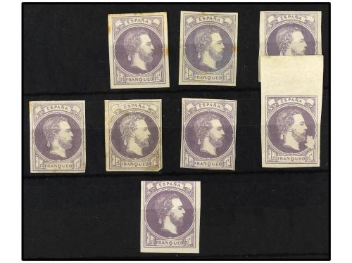 (*) ESPAÑA. Ed. 158 (8). 1 real violeta. 8 sellos alguno defectos o manchas del tiempo. Cat. 2.000€.