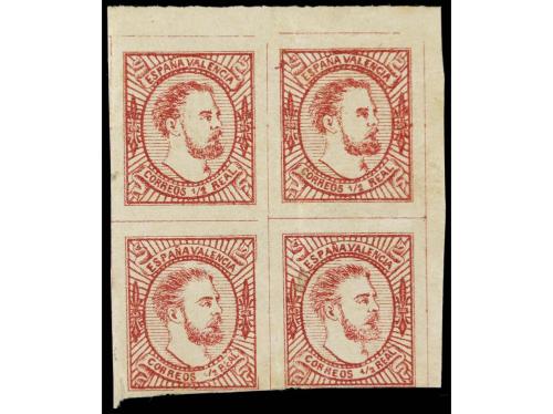 * ESPAÑA. Ed. 159 (4). 1/2 real carmín. Bloque de cuatro, se