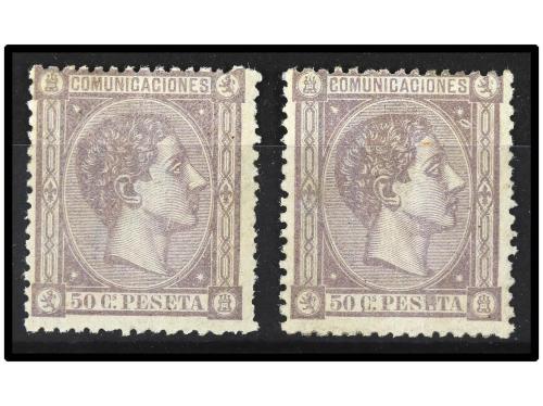 * ESPAÑA. Ed. 168 (2). 50 cts. gris. Dos sellos centrajes acpetables, leve doblez vertical. Cat. 360€.