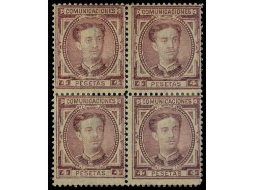 * ESPAÑA. Ed. 181(4). 4 pts. violeta claro en bloque de 4. BONITO. RARO. Cat. 336€.