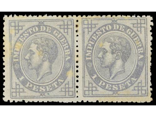(*) ESPAÑA. Ed. 186 (2). 1 pta. gris. 2 sellos manchas del tiempo. Cat. 800€.