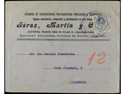 ESPAÑA. Ed. 274. 1922. HUELGA DE CORREOS (1 agosto a 4 septiembre). BARCELONA a ZARAGOZA. 25 c., mat. CÁMARA OFICIAL DE COMERCIO al no haber fechador.