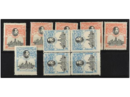 ** ESPAÑA. Ed. 305 (5), 306 (5). 40 cts. (5 sellos) y 50 cts. (5 sellos). Raros sin fijasellos. Cat. 600€.