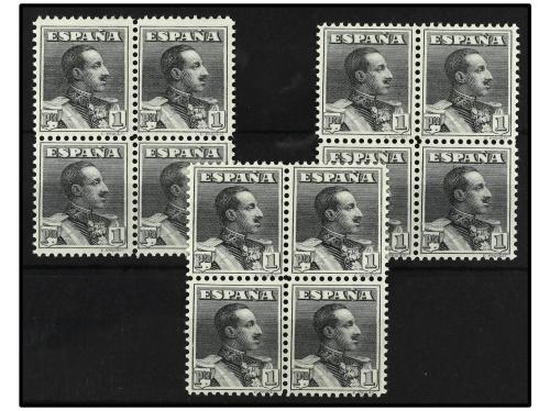 ** ESPAÑA. Ed. 321 (12). 1 pta. pizarra. Tres bloques de cuatro. Bien centrados y numeración privada.