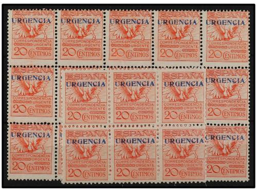 ** ESPAÑA. Ed. 591A. 20 c. urgente. 21 sellos. Centrados variados. Cat. 1.050€.