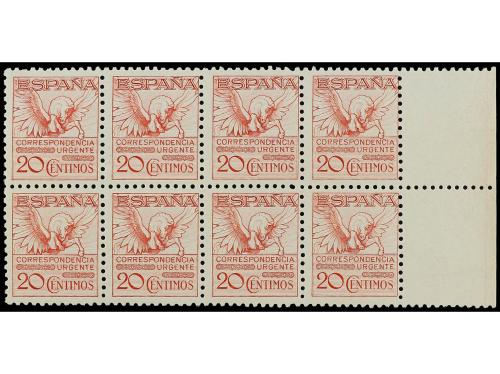 ** ESPAÑA. Ed. 592A. 20 céntimos rosa. Bloque de 8. Centrado habitual. 2 sellos goma parcial. Cat. 1.040€.