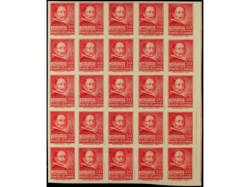 ** ESPAÑA. Ed. 726s(25). 30 cts. carmín en bloque de 25 SIN DENTAR. Borde lateral de hoja. OCASION. Cat. 1.100€.