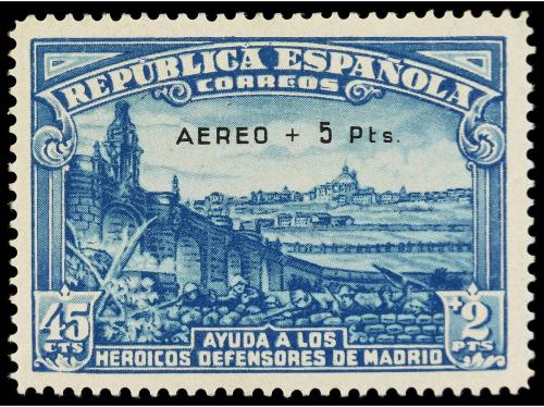 * ESPAÑA. Ed. 759. Aéreo + 5 pts. azul. Bien centrados. Firmado ROIG. Cat. 300€.