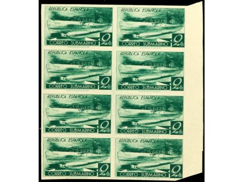 (*) ESPAÑA. Ed. 776ccds(8). 2 pts. verde CAMBIO DE COLOR. Bloque de 8 con bordes de hoja. PRECIOSO. RARO. OCASION. Cat. 320€.