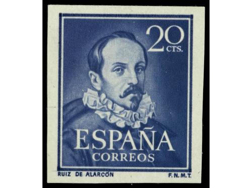 ** ESPAÑA. Ed. 1074s. RUIZ DE ALARCON. 20 cts. violeta oscuro SIN DENTAR. PRECIOSO. MUY RARO. OCASION. Cat. 1.600€.