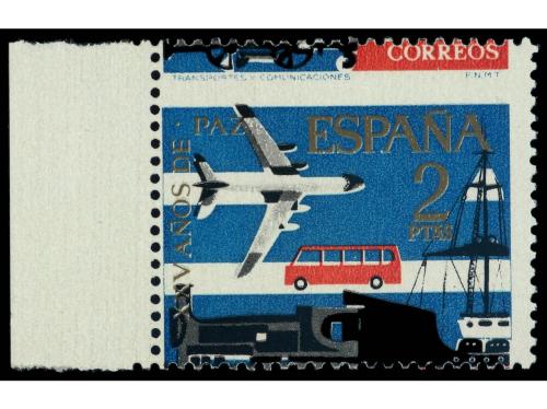 ** ESPAÑA. Ed. 1584dh. XXV AÑOS DE PAZ. 2 pts. con DENTADO HORIZONTAL DESPLAZADO (apareciendo CORREOS en la parte superior). Borde de hoja. PRECIOSO. RARO.