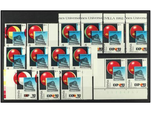 ** ESPAÑA. Ed. 2998dv/id. EXPO'92. Lote de 15 sellos con VARIEDADES (DENTADOS y COLORES DESPLAZADOS). Buena calidad. ALTO VALOR EN CAT. OCASION.