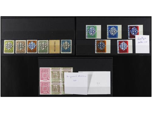 ESPAÑA: AYUNTAMIENTO DE BARCELONA. Sellos similares a la serie de Telégrafos de 1941, en diferentes colores y leyenda "Correos". 10 sellos y maculaturas.