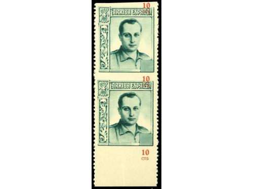 * ESPAÑA: BENEFICENCIA. Ed. NE15dhvsh. 10 cts. en pareja vertical con VALOR DESPLAZADO VERTICALMENTE y SIN DENTADO HORIZONTAL. PRECIOSA. RARA.