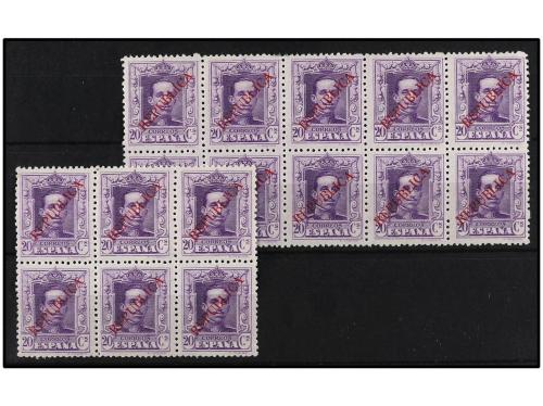 ** ESPAÑA E. LOCALES REPUBLICANAS: BARCELONA. Ed. NE 1. NO EXPENDIDOS. 20 cts. lila. 16 sellos en dos bloques. RAROS. Cat. 1.120€.