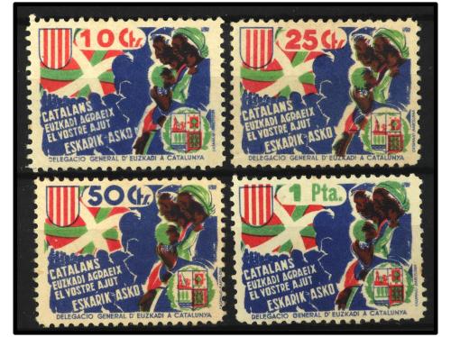 ESPAÑA GUERRA CIVIL. DELEGACIÓN GENERAL DE EUZKADI EN CATALUÑA. 10, 25, 50 cts. y 1 pta. SERIE COMPLETA. PRECIOSA. MUY RARA.