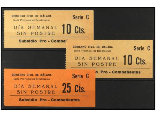 ESPAÑA GUERRA CIVIL. Ed. Allepuz 64 y 66. MÁLAGA. DÍA SEMANAL SIN POSTRE. 2 Ejemplares de 10 cts. (CON Y SIN ACENTO EN DÍA) y 1 de 25 cts. RAROS. OCASION.
