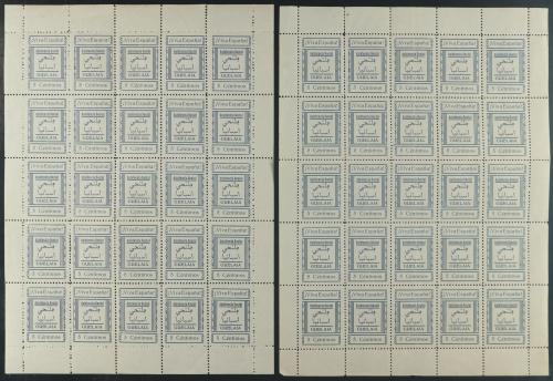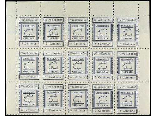 ESPAÑA GUERRA CIVIL. ZONA NACIONAL. ÁFRICA (Guelaia). 5 cts. azul. 50 sellos en 2 hojas completas. Allepuz ** 1.
