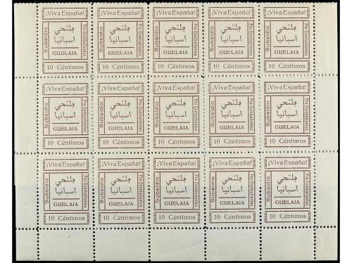 ESPAÑA GUERRA CIVIL. ZONA NACIONAL. ÁFRICA (Guelaia). 10 cts. castaño. 50 sellos en dos hojas completas. Allepuz ** 3.